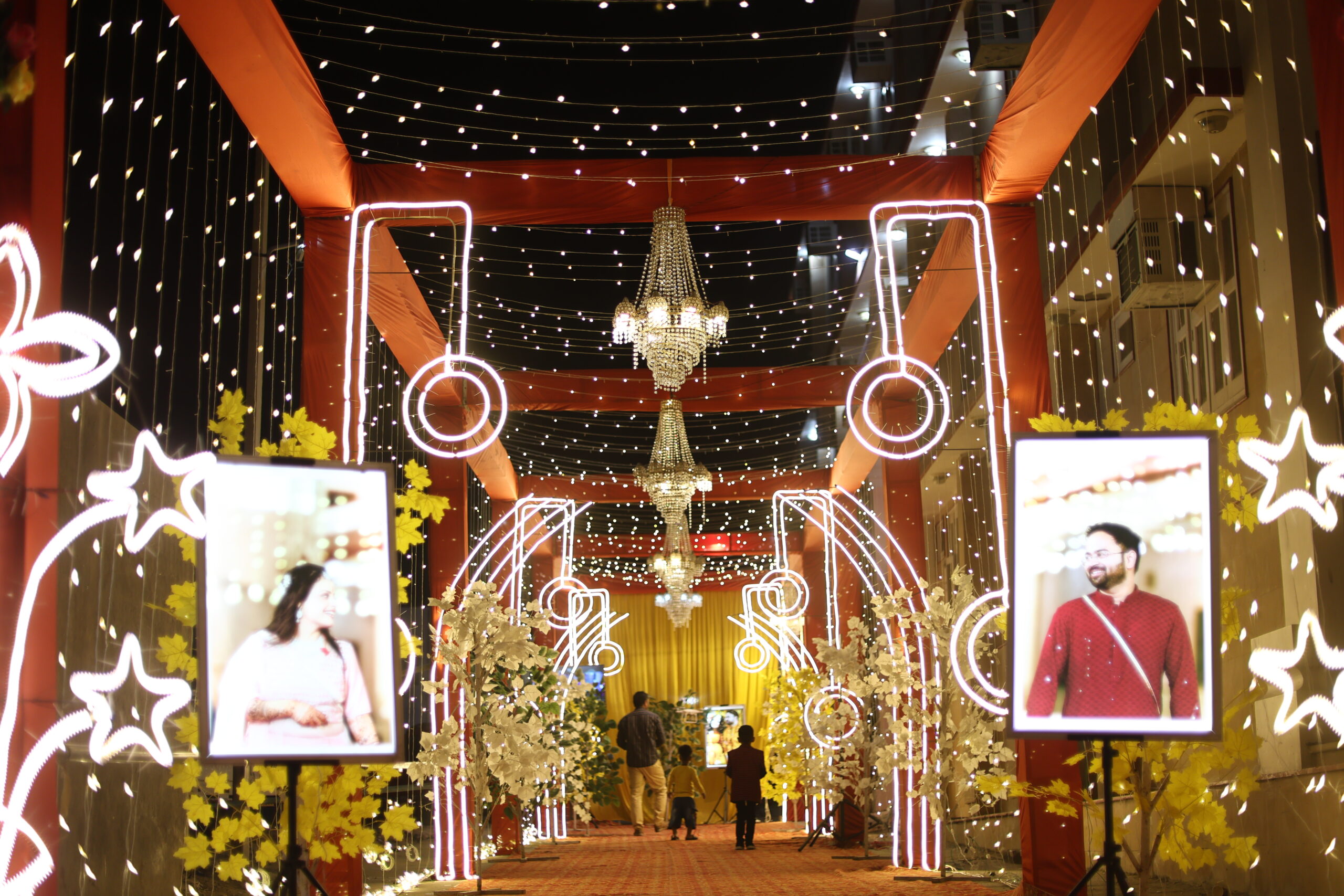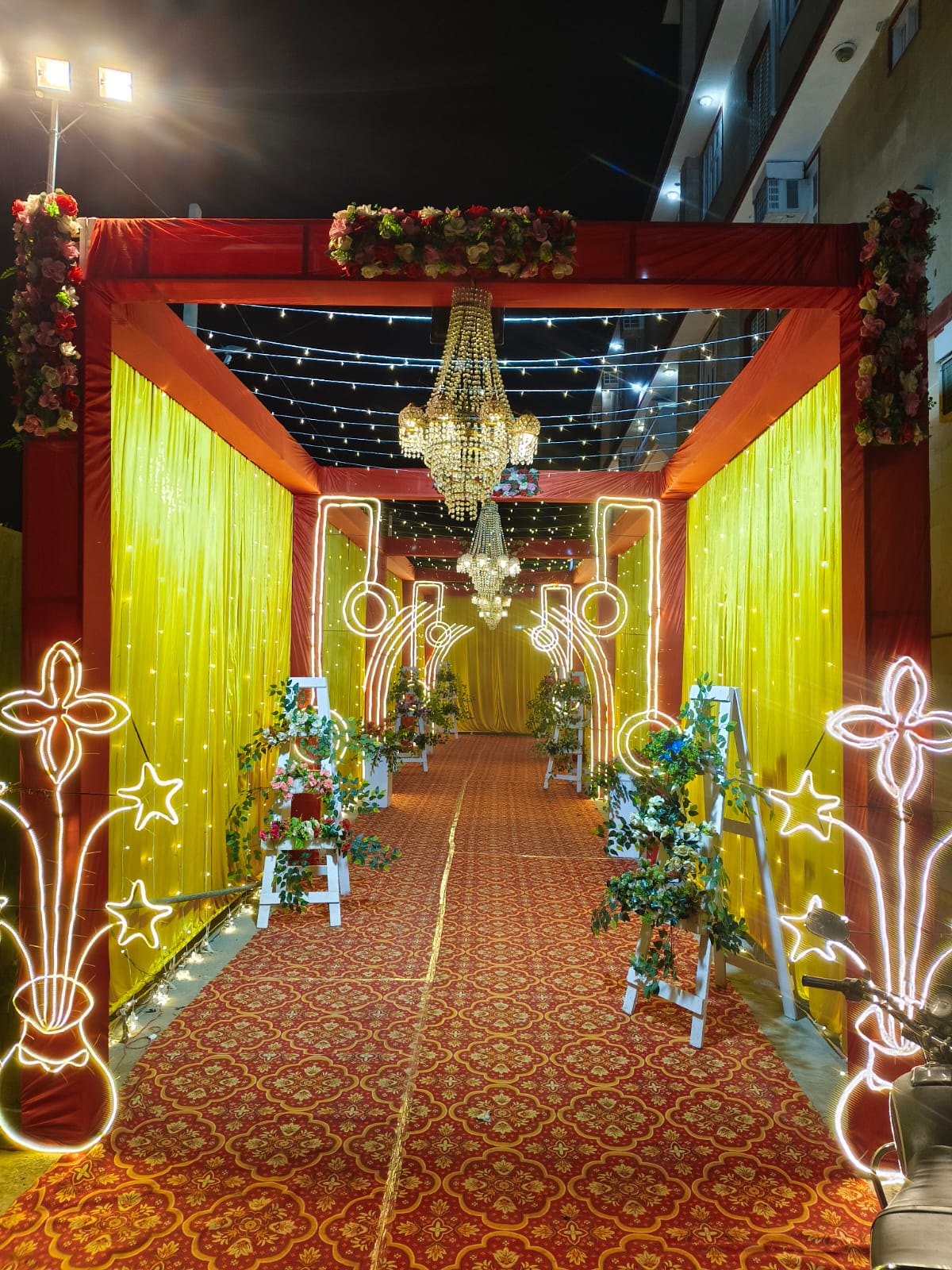 Entrance Décor by Sancheti Events At Sancheti Events, we design stunning entrances with floral arches, elegant drapes, and creative lighting to make a grand first impression. Let us set the perfect tone for your event from the moment your guests arrive.Make Every Entrance Unforgettable!